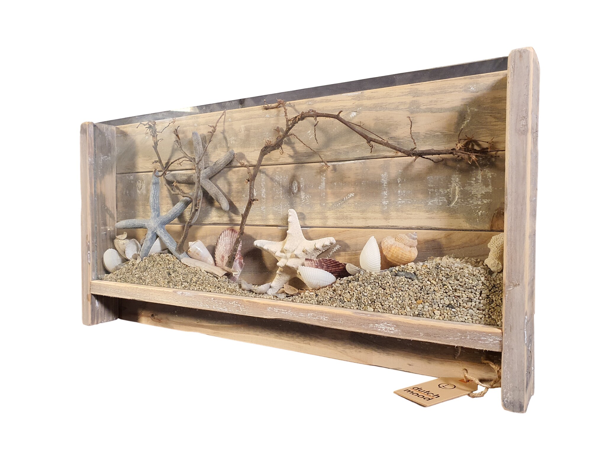 Was ist das jetzt?! Ja, das ist ein besonderes Produkt. Soll die Erinnerungen beispielsweise an einen Urlaub am Meer bewahren. Und jetzt nicht auf einem Foto, sondern in Sand, Muscheln und was man sonst noch am Strand findet. Die Glasplatte an der Vorderseite ist eingeschoben, um das Herausfallen von Sand und Muscheln zu verhindern. Atmosphäre. Die Glasplatte ist echtes Glas.