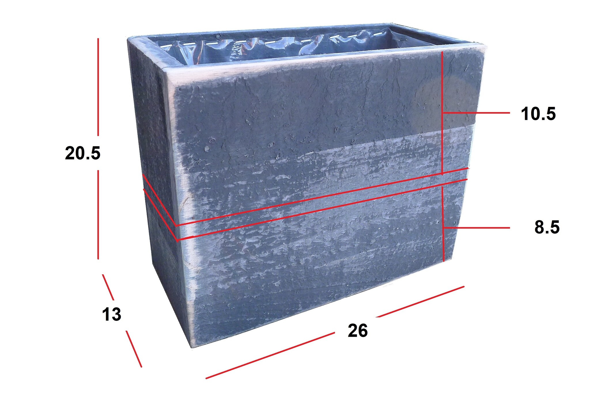 Topf hoch mit schweren Plastik. 26 x 13 x 20.5 cm
