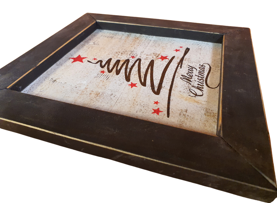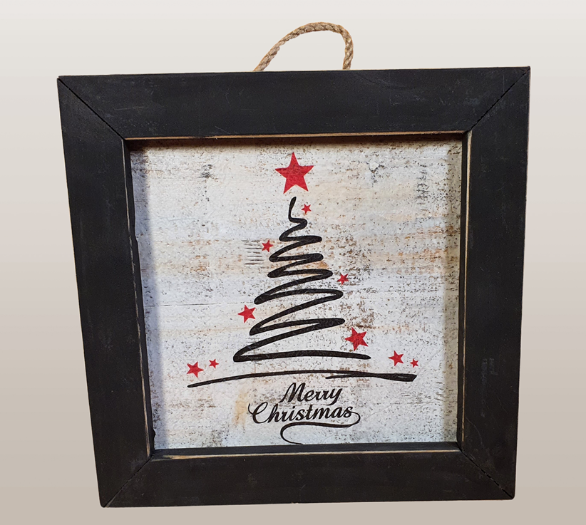 Holzfliese in einem Holzramen. 22 x 22 x 3.5 cm