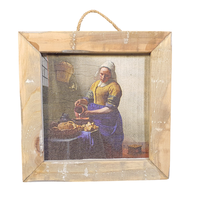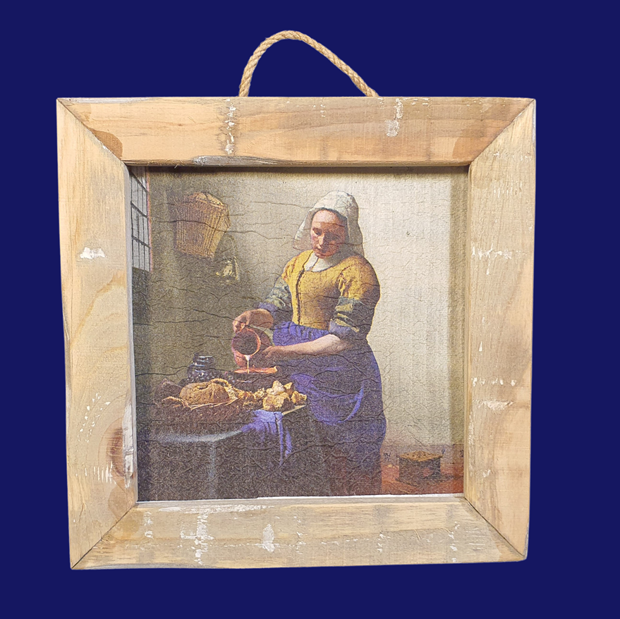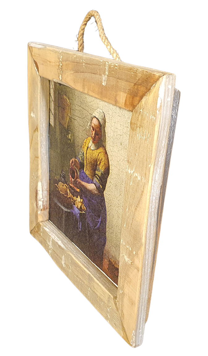 Eine Holzfliese in einem robusten Holzrahmen. Dass etwas so Kleines plötzlich so viel Atmosphäre schaffen kann. Die Fliese sieht aus wie eine handbemalte Keramikfliese, ist aber Holz. Auf der Rückseite ist eine Schnur angebracht, an der man sie mit einer Schraube oder einem Nagel aufhängen kann. Das Format ist 22 x 22 x 3,5 cm, so dass es nur in einem speziellen Briefkasten Briefkasten geliefert werden kann. Die Kachel kann daher alternativ zu einer großen Karte verschickt werden.