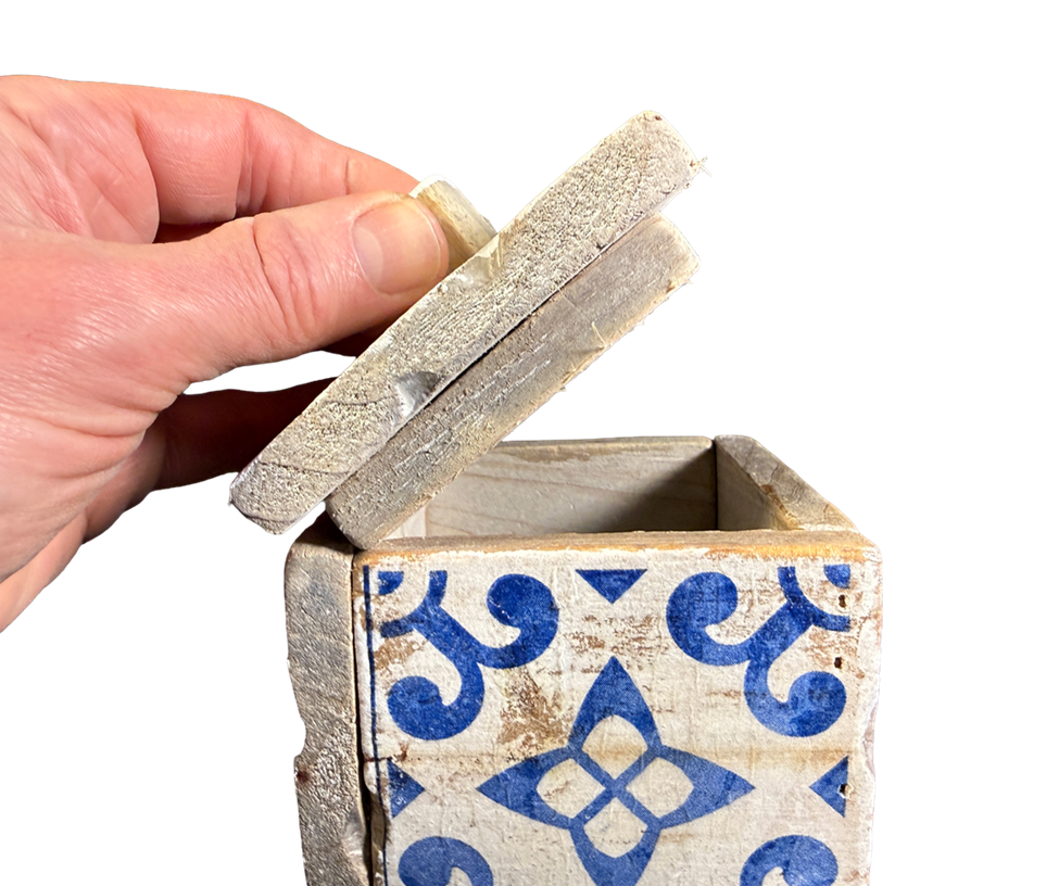 The wood is spruce and relatively lightweight. All (wooden) tiles are first hand-aged and then assembled. This gives the box an authentic and antique appearance.