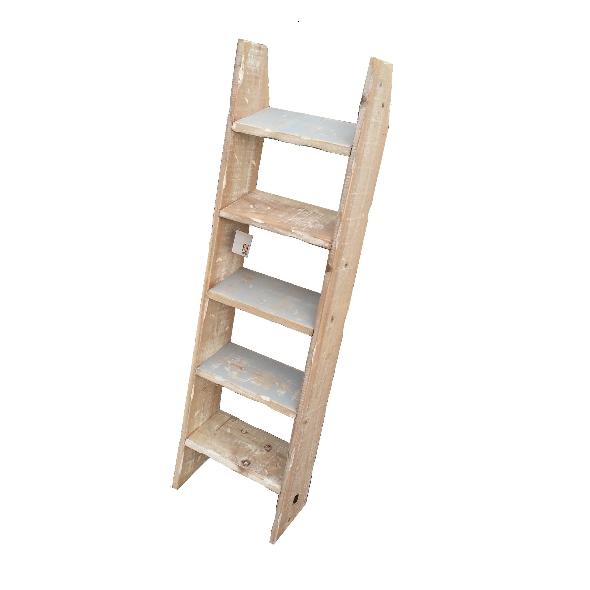 Presentation staircase in old dutch with a few steps painted gray. Good to decorate with, many products look great on this. For the looks and sturdiness, the places where the steps are attached have been milled.