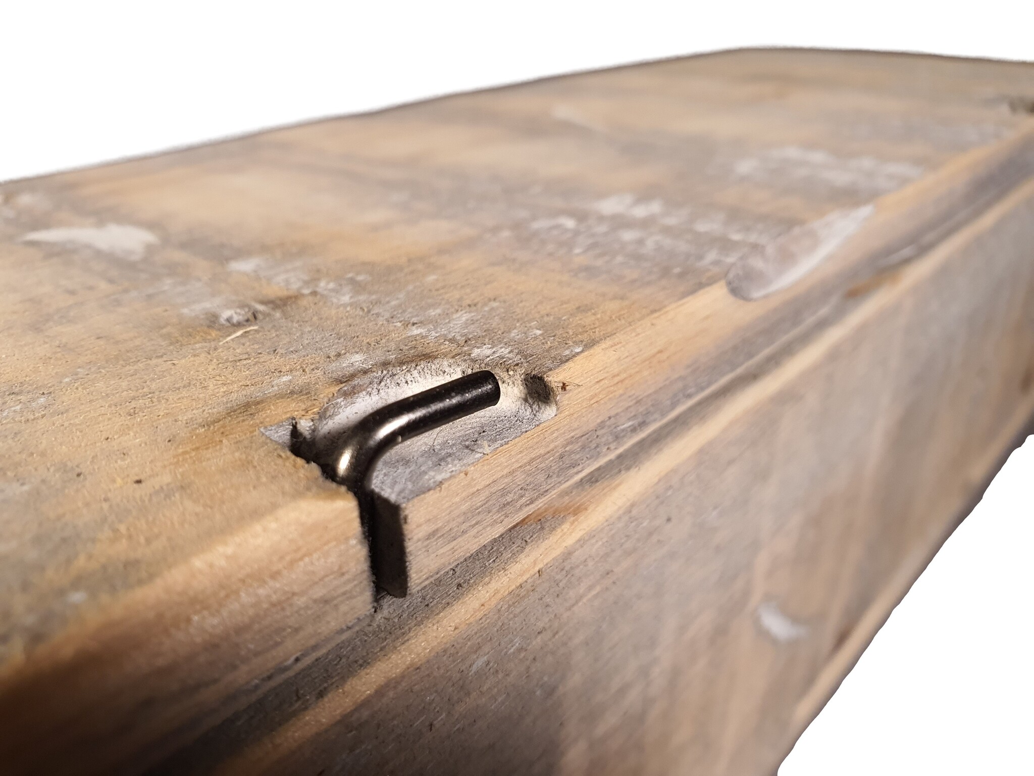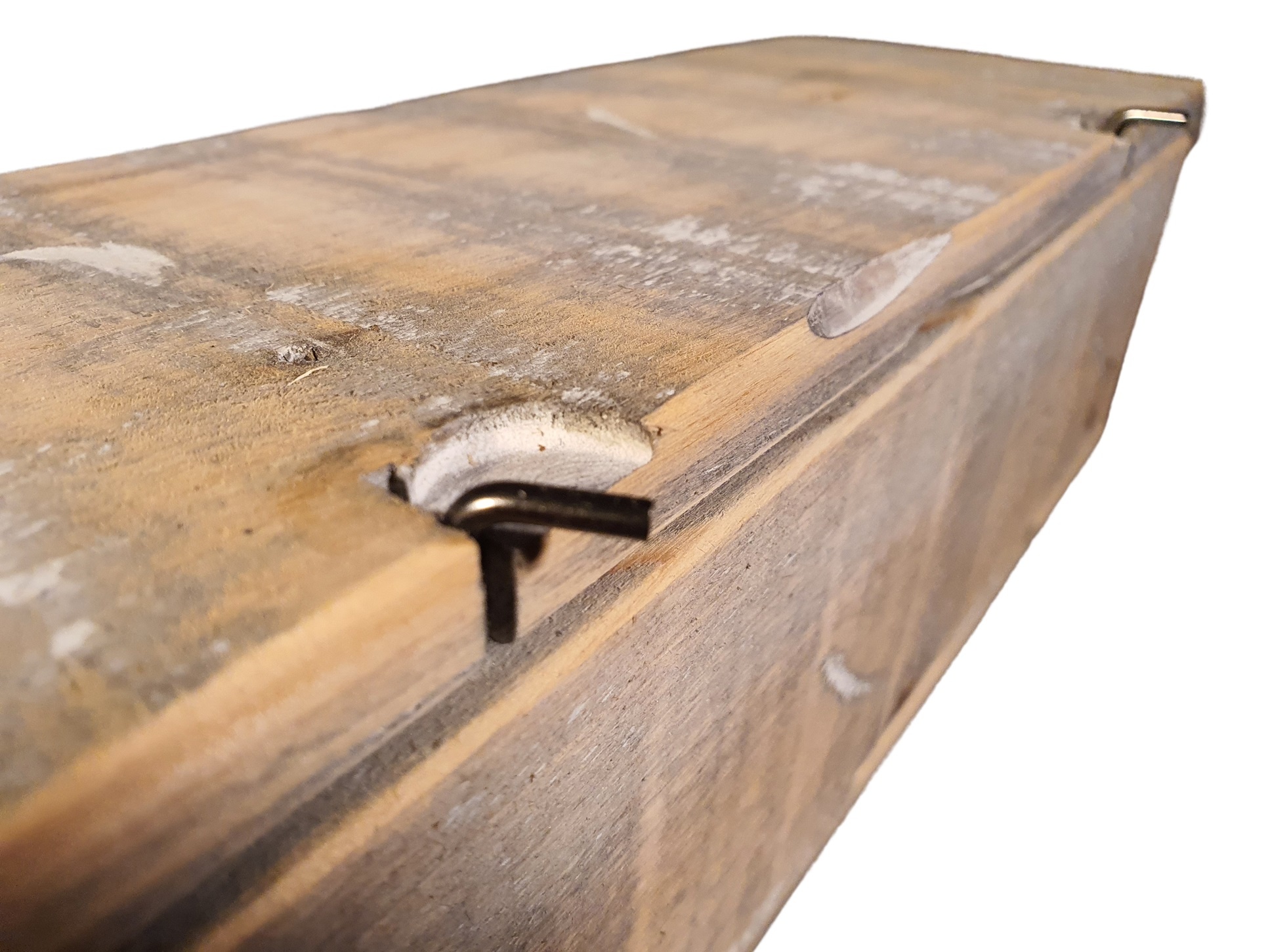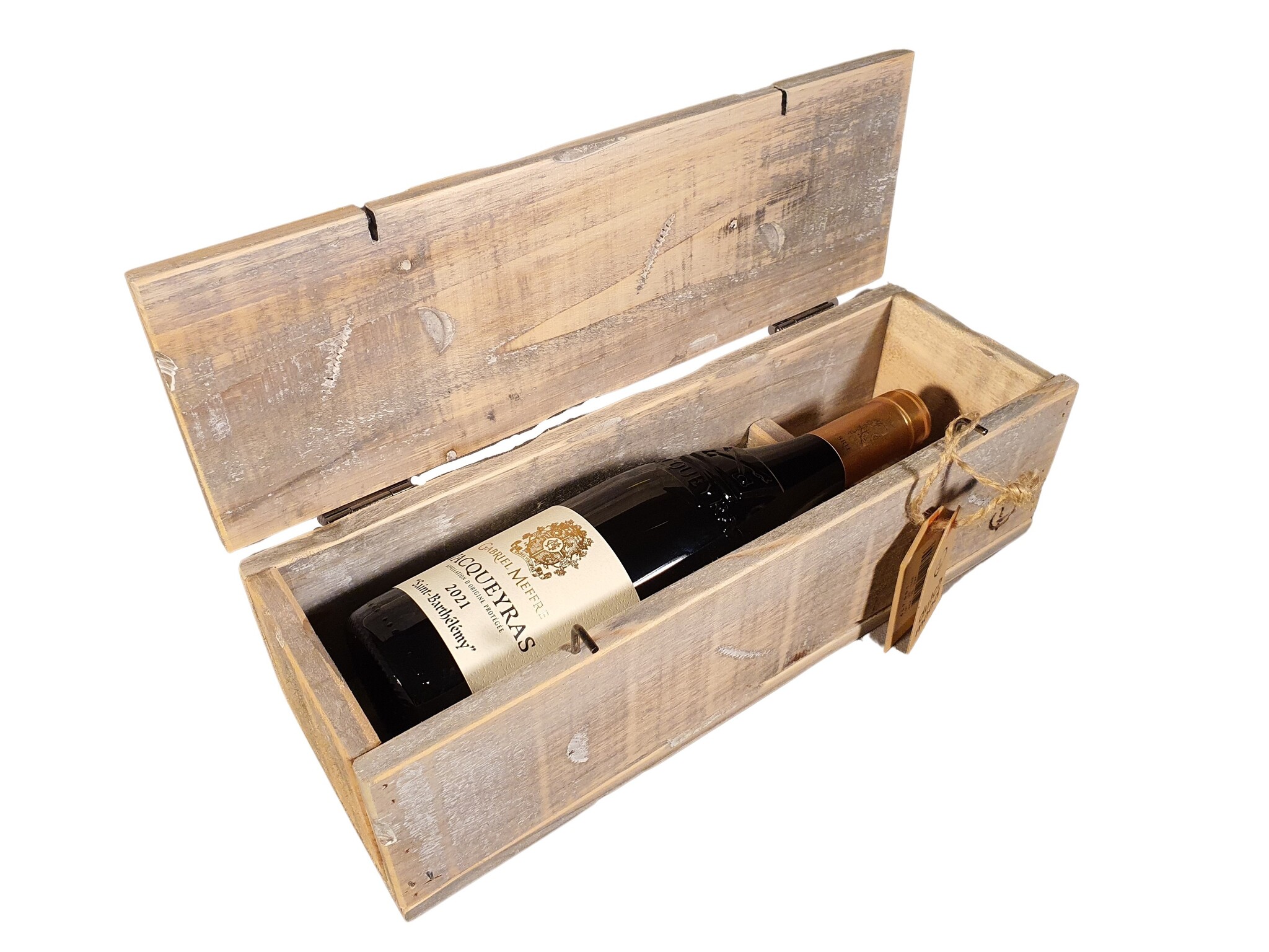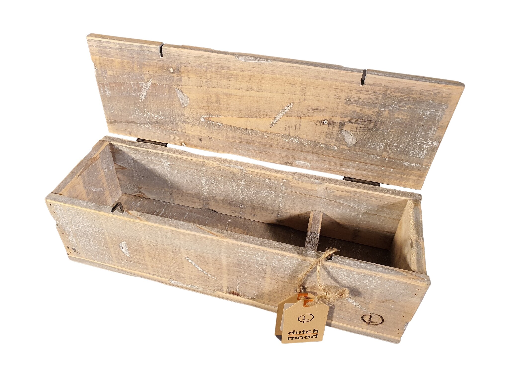 Wijnkist in old dutch. Een mooie glanzende fles lijkt nog mooier in deze old dutch style wijnkist. Het gladde van het glas steekt mooi af bij deze matte finishing. De bordeaux fles past, maar ook de bredere bourgogne fles. De kist kan origineel worden afgesloten met een L vormige nageltjes. Deze zijn verzinkt, zodat de kisten perfect stapelbaar zijn.