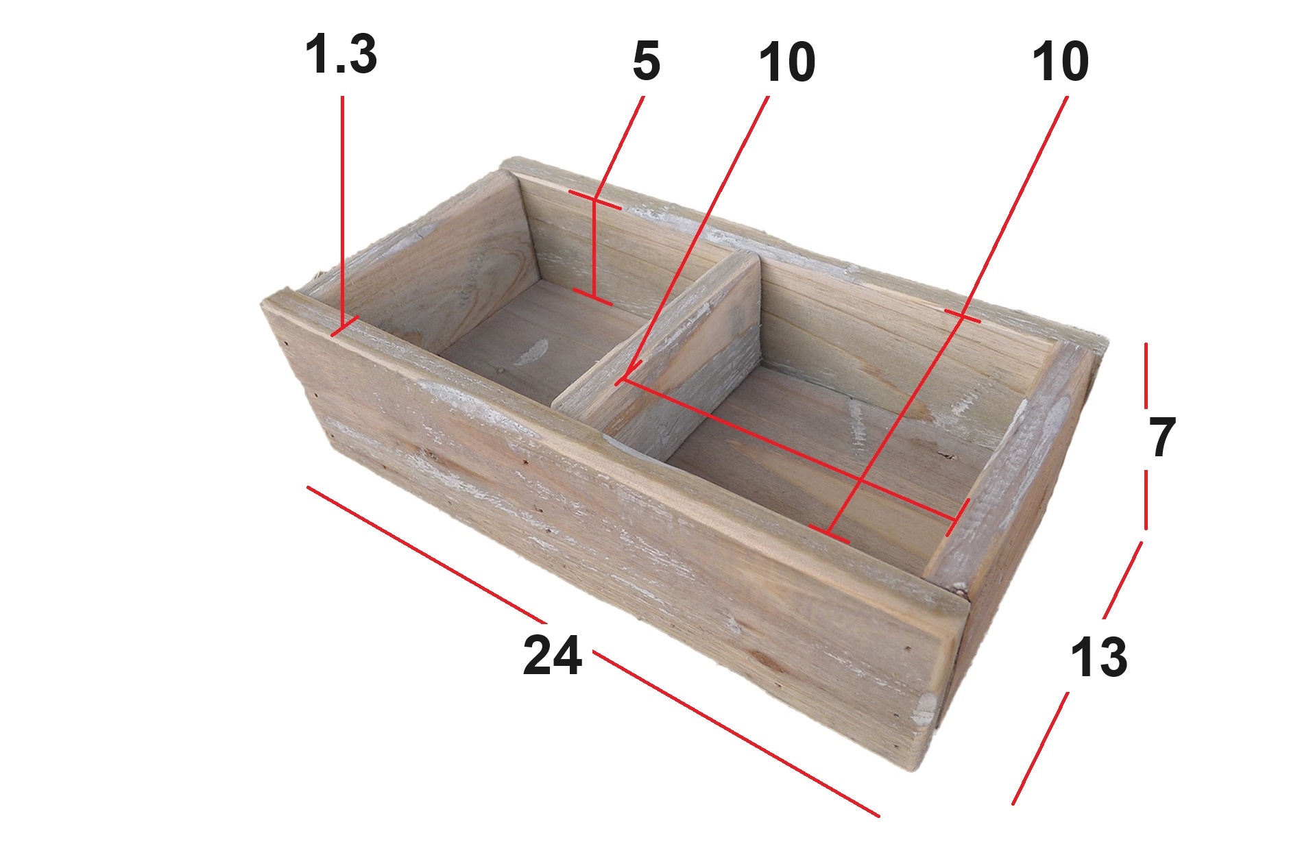 glazen accubakje in houten tray. 24.5x13x12cm