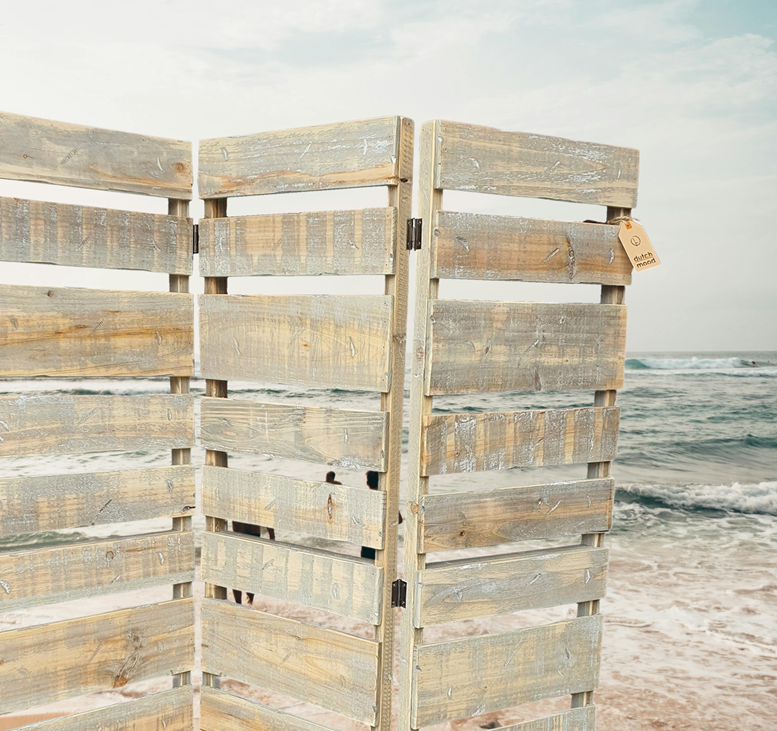 Een schitterende woondecoratie, die niet zomaar valt in te delen. Het zou als raamshutter gebruikt kunnen worden, maar dan moet je wel brede vensterbanken hebben. Of ramen tot op de grond. Maar deze doet het vooral goed als muurshutter. Je brengt ineens veel sfeer met dit 3 luik. Verder zou je er accessoires aan kunnen hangen, of bv foto's.
